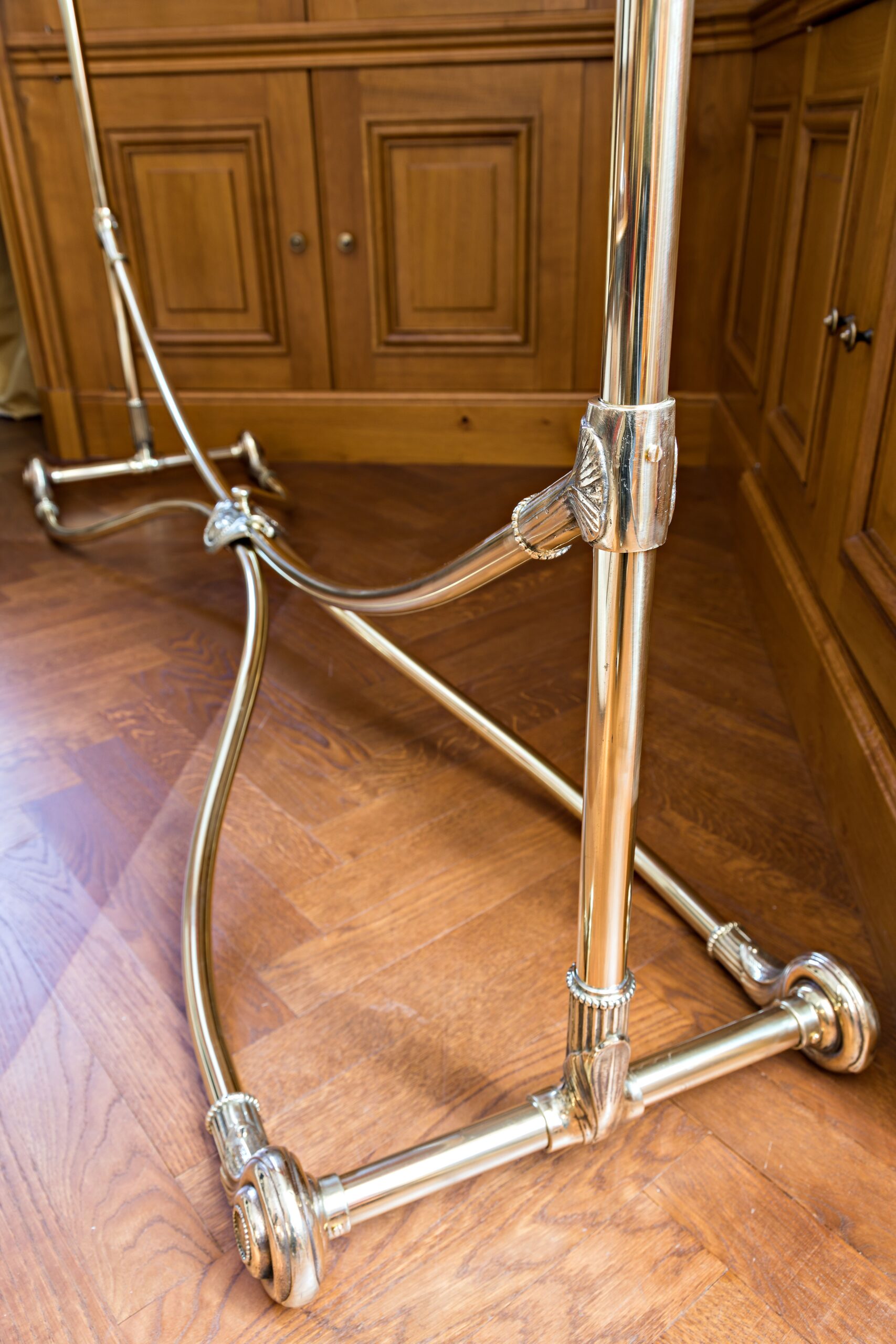 Ce portant que l’on pouvait retrouver, au début du 20éme siècle, dans les grands magasins parisiens ou dans les hôtels de luxe est entièrement réalisé en laiton poli pièce par pièce.